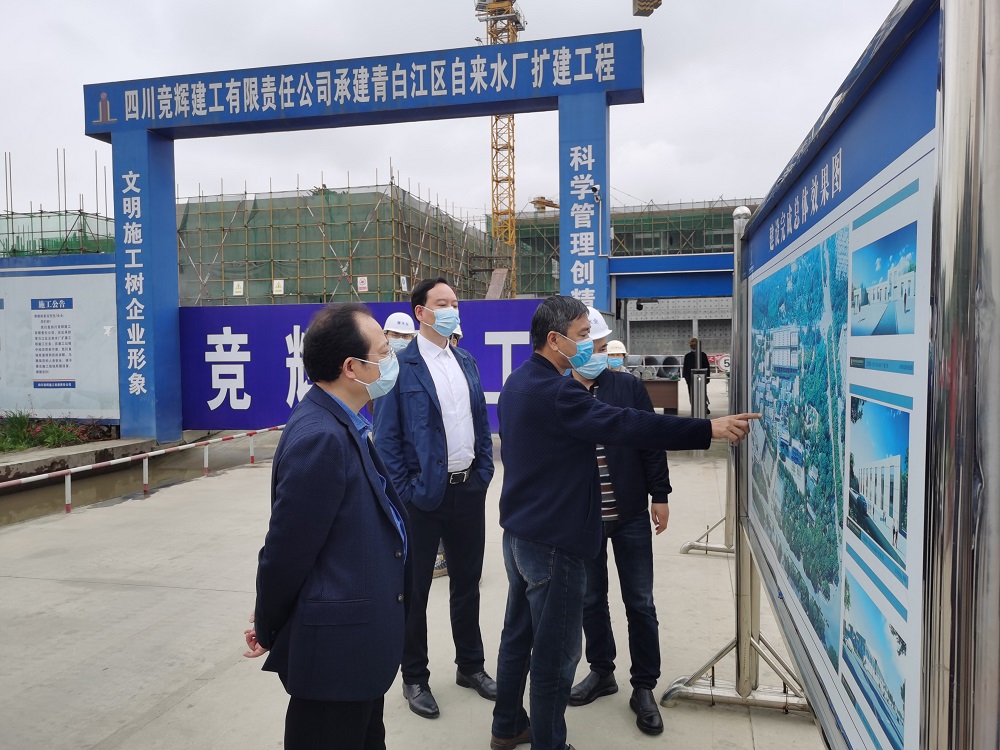 钟杰董事长一行首先前往成都青白江水业股份有限公司,先后视察了该公司20T自来水厂扩建项目工地和现有自来水生产线,详细询问了工程规模、建设进度、质量控制、安全生产等情况,听取了成都青白江水业股份有限公司经营班子工作汇报。