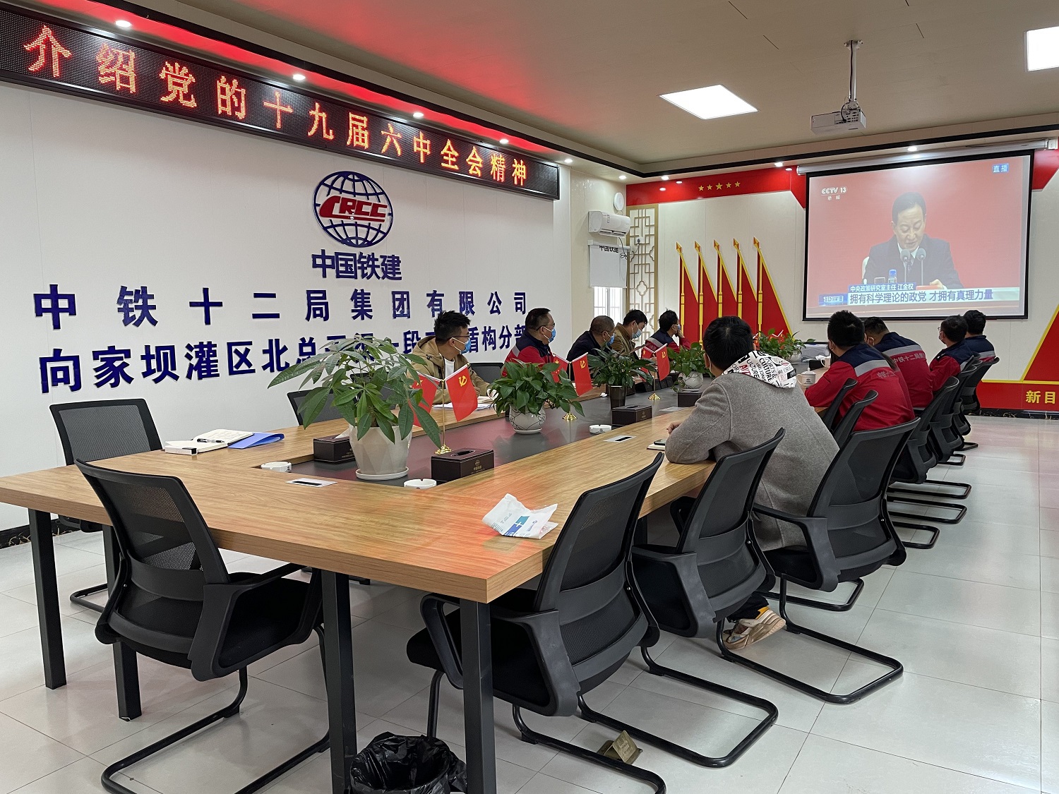 工程局公司基层员工在施工一线学习收看党的十九届六中全会新闻发布会