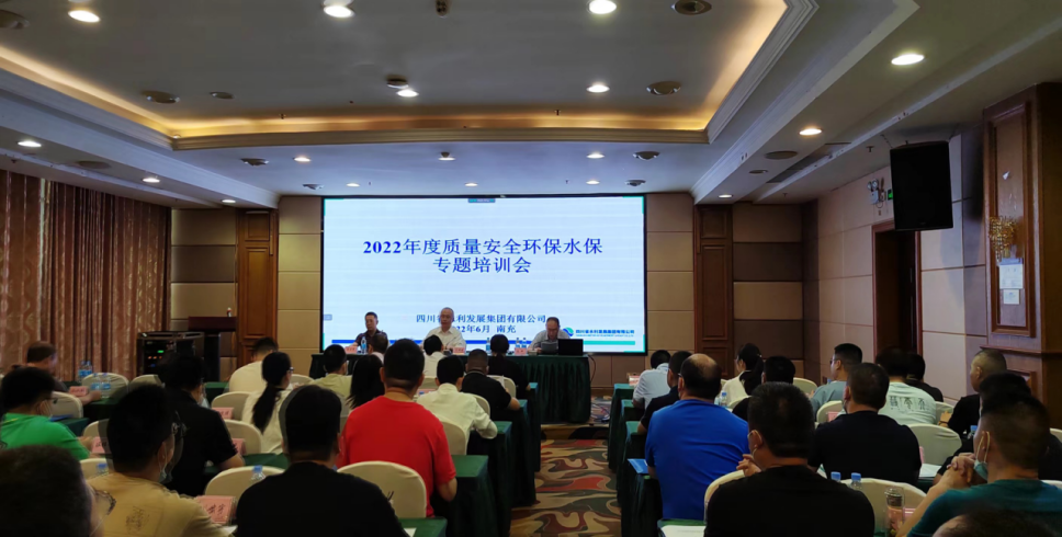 为深化“两去两服务”作风整顿工作,有效推动2022年水利高质量发展“强推进”落地落实,保障集团牵头实施的跨市(州)重大水利工程项目顺利推进,2022年6月20日~24日,由集团主办、亭子口公司承办的2022年度质量安全环保水保专题培训在南充举办。本次培训邀请了集团副总经理隆文非在内的多位省内质量安全环保水保专家授课。集团副总经理兼亭子口公司党委书记、董事长尹晓东到会指导并就亭子口灌区项目一期工程质量安全环保水保相关工作做部署安排。