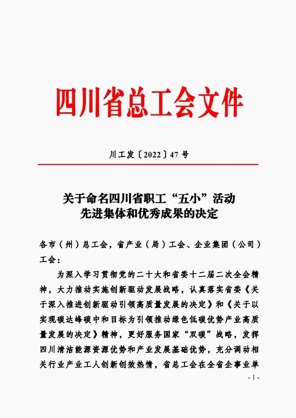 近日,四川省总工会命名了一批四川省职工“五小”活动先进集体和优秀成果。集团设计公司陈英、胡良文、单智杰、罗涛、滕毅申报的“一种由防冲墙组成的简易消力池结构”获得四川省职工“五小”活动优秀成果奖。