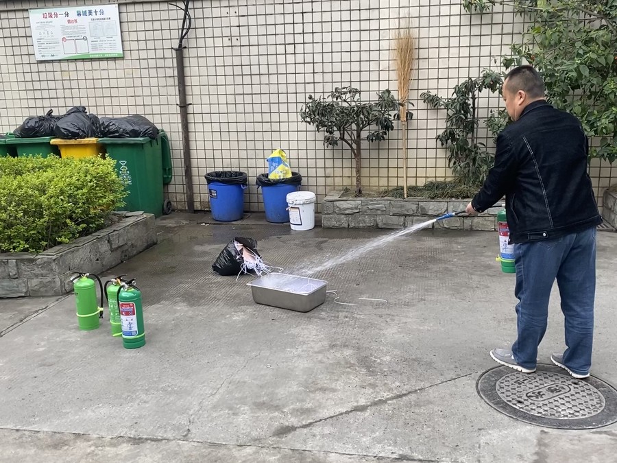 演练开始后,消防安全管理人员认真指导员工正确使用手提灭火器进行灭火演练。面对火情,员工们表现沉着冷静,正确地使用灭火器将燃起的明火迅速扑灭。