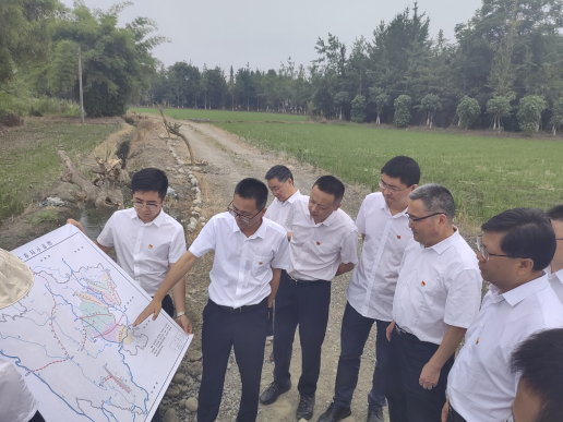 班子一行来到安德镇安云村基本农田建设现场和成都市环城生态区生态修复综合项目土龙路现场研学。行走在田间地头,大家实地感受了农业现代化的美丽图景,进一步加深了对“藏粮于地、藏粮于技、藏粮于民”国家战略举措的理解和认识。大家深切地体会到水利是粮食的命脉,作为四川水利人重任在肩、使命在身,要以四川水利高质量发展“3226”总体工作思路为引领,推进“一主四片”水网加速形成,为打造更高水平“天府粮仓”,为保障国家粮食安全贡献水利力量。