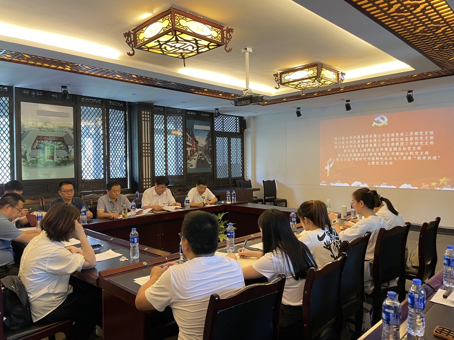 为深入学习贯彻习近平新时代中国特色社会主义思想主题教育要求,抓实抓细“我为群众办实事”实践活动,巩固“两去两服务”作风整顿成果,进一步增强集团各基层党支部围绕主责主业,服务基层一线意识,不断提升总部各部门与下属企业、与外部友好单位之间沟通协作效率。7月21日,集团总部纪检监察部党支部联合设计公司测绘分院党支部开展了以“学思想、强党性、重实践、建新功”为主题的联学共建主题党日活动。集团党委工作部党支部、群团工作部党支部、四川省水保总站党支部特邀参加。