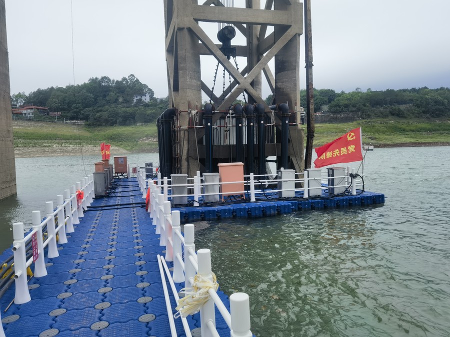 根据确定的应急供水方案,在双溪水库库内取水口设置临时应急抽水设施供水,采用库内便携式浮箱潜水泵布置,调配1000KW移动供电设备和20余台(套)大功率抽水机泵保障应急供水,全天24小时不间断向自贡城区、荣县县城及下游沿途乡镇补水供水95天,抗旱输水量最高达23万m³/天,累计供水2208.05万m³,有效解决了自贡城乡77万人缺水需求,有力保证了城乡居民用水安全,用实际行动彰显了国企社会责任新担当。