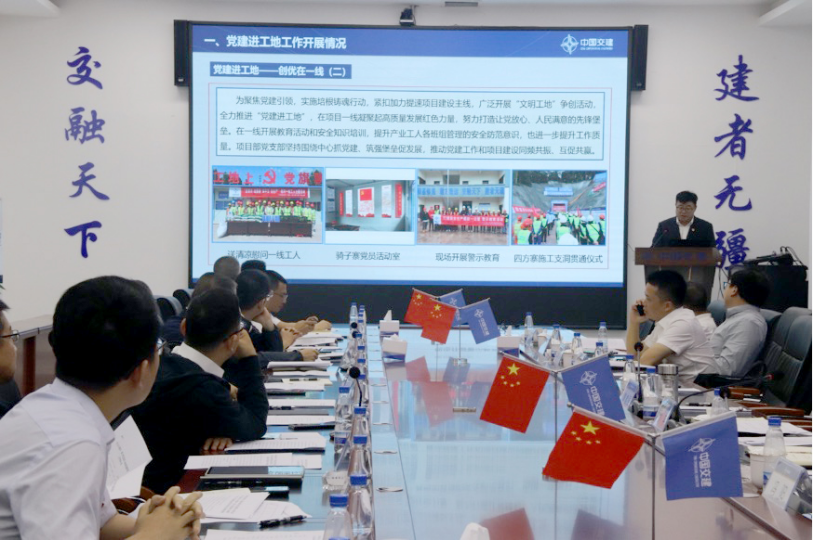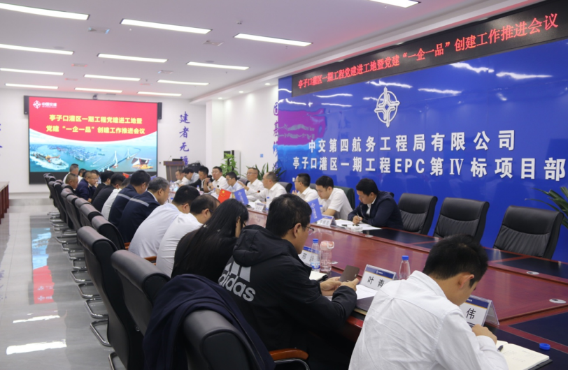为充分发挥党建工作举旗定向的政治引领作用,有效推进党建与水利工程建设业务工作深度融合,切实发挥好基层党组织战斗堡垒作用和党员先锋模范作用,9月27日,亭子口灌区一期工程党建进工地暨“一企一品”创建工作推进会在Ⅳ标段中交四航局项目召开。会议由亭子口公司党委副书记、工会主席刘平主持。亭子口公司党委书记、董事长廖建强,党委委员、副总经理刘飞出席会议。