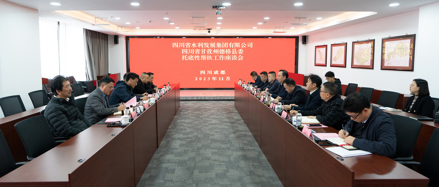在集团总部会议室召开的支持德格县托底性帮扶工作座谈会上,集团党委副书记、董事、副总经理、总会计师尹晓东介绍了集团基本情况及产业发展优势。集团党委委员、纪委书记吴军介绍了集团开展托底性帮扶前期工作开展情况。会上,全体人员共同观看了水发集团宣传片。政企双方分别就帮扶清单事项进行交流发言。