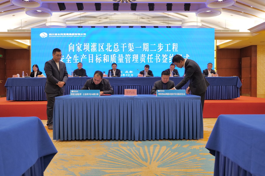 会议学习贯彻了习近平总书记关于安全生产重要论述和质量强国建设的重要指示精神,传达了全国安全生产电视电话会议、全省安全生产工作会议精神以及省委省政府和水利部、水利厅关于安全质量管理的各项决策部署,见证了向家坝公司与向家坝灌区一期二步工程部分参建单位签订安全生产目标责任书和质量管理责任书,认真分析水发集团项目建设安全质量管理面临的形势,通报了历次各级监督检查发现的主要安全质量问题,安排部署当前和今后一个时期项目建设安全质量管理工作。水利厅建设处、审监处负责同志全面系统分析了当前水利建设面临的新形势、新问题、新挑战,要求水发集团要始终坚持问题导向,全面压紧压实责任,以大质量管理为重要抓手,进一步强化安全生产、建设质量等实行全过程、全链条管理,从严监管,逗硬奖惩,为四川水利高质量发展奠定坚实基础。