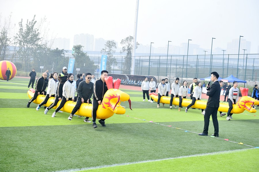 在趣味比赛中,水利万物·筑梦向前(托举球)项目各个参赛队齐心协力,一起托举起巨大球体稳步前行,克服各种不确定性阻力最终到达终点,迎来阵阵掌声;在锐意进取·水发齐心(单绳拔河)项目比赛现场,抓牢赛绳,勒绳下腰,降低重心,齐心协力往后“拔”,欢呼声、加油声此起彼伏;奋楫争先·“水”与争锋(赛龙舟)、长风破浪·共赢未来(滚滚向前)趣味比赛项目,尽显“活力水发·运动水发”的健康形象。