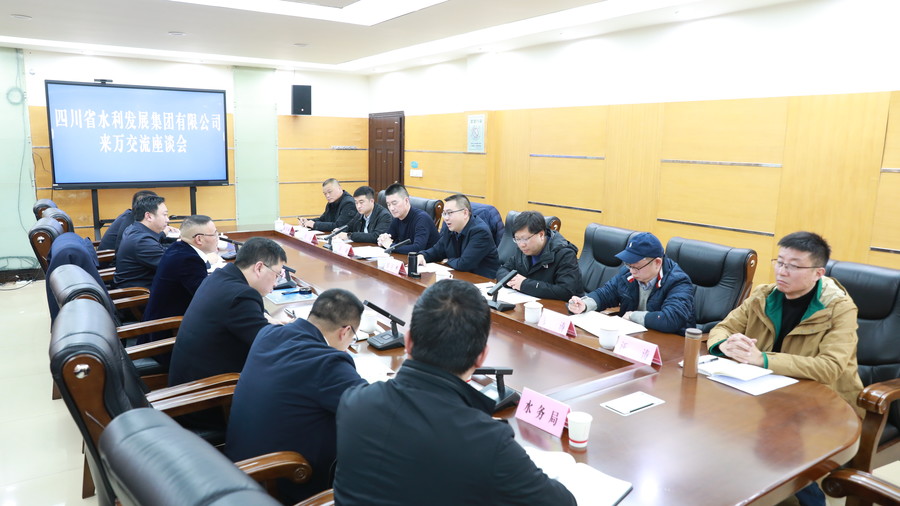在与万源市委、市政府调研交流会上,万源市委书记蒋波对万源市“一路二水三产业”和城乡规划建设发展思路进行了详细介绍。双方就发挥各自优势,立足万源市发展需求,全面拓展合作领域,服务万源水利事业可持续发展等事项进行了深层次交流。就成立工作专班,优化合作机制,加强沟通交流,在新建水库、水网规划等领域深挖合作潜力、创新合作模式,做活“水文章”,共建发展新格局,携手共赢新未来等形成一致意见。