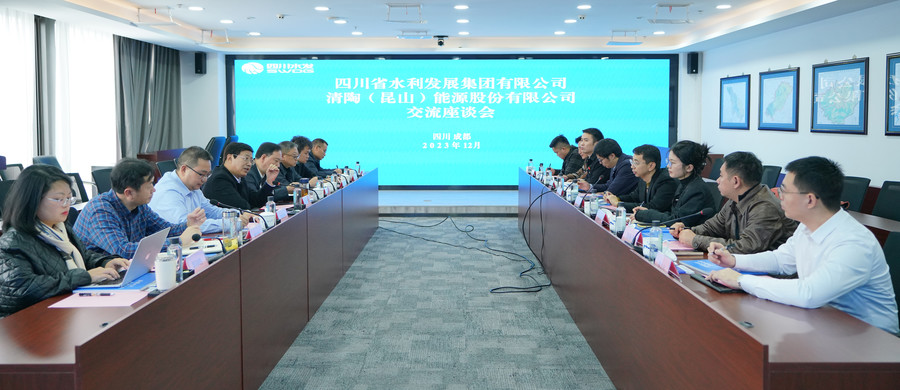 2023年12月13日,清陶(昆山)能源股份有限公司(以下简称“清陶能源”)董事长冯玉川一行到访集团,集团党委副书记、副董事长、总经理向仕春热情接待并进行座谈。