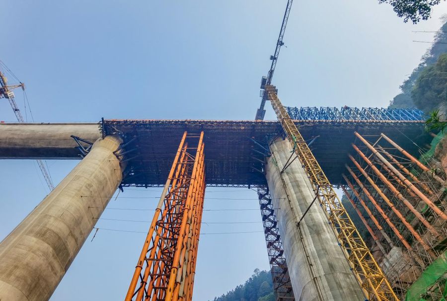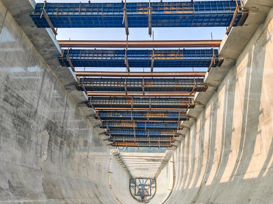 会诗沟渡槽位于宜宾市翠屏区思坡镇会诗村,是向家坝灌区工程北总干渠第二流量段。该渡槽全长240米,共6跨,单跨最高高度为76米,槽身为薄壁U型结构,是向家坝灌区北总干渠一期一步工程最高渡槽,也是项目建设的重难点控制性工程。