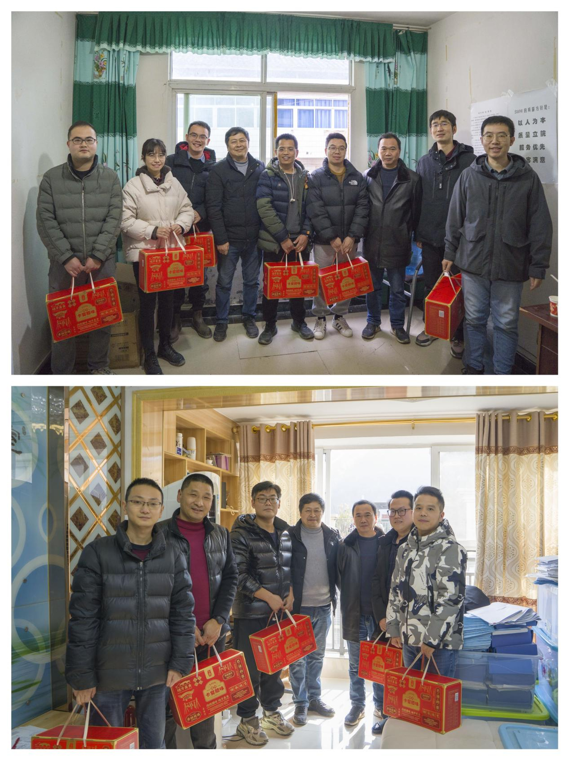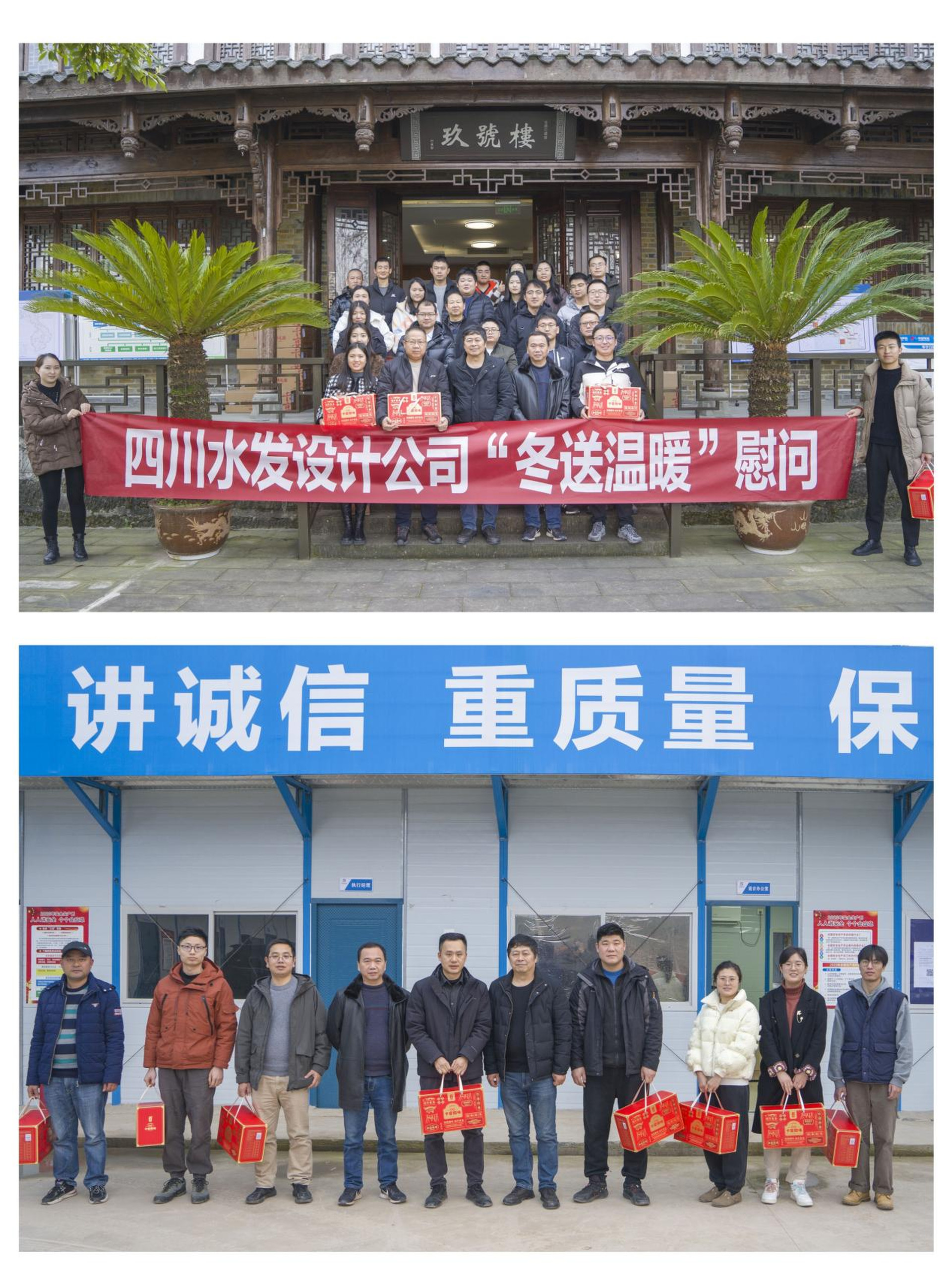 设计公司工会副主席彭纪伟带领慰问小组一行先后到沉水水库设代处、红鱼洞水库设代处、亭子口灌区一期总承包(EPC)第Ⅰ标项目部和祠堂湾水库EPC项目部,为大家送上腊味等慰问品以及对未来生活的美好祝愿,感谢奋斗在一线的职工为公司发展所作出的积极贡献,叮嘱大家注意安全,合理安排时间,注意劳逸结合,做好低温天气的保暖御寒工作,确保自身健康安全。
