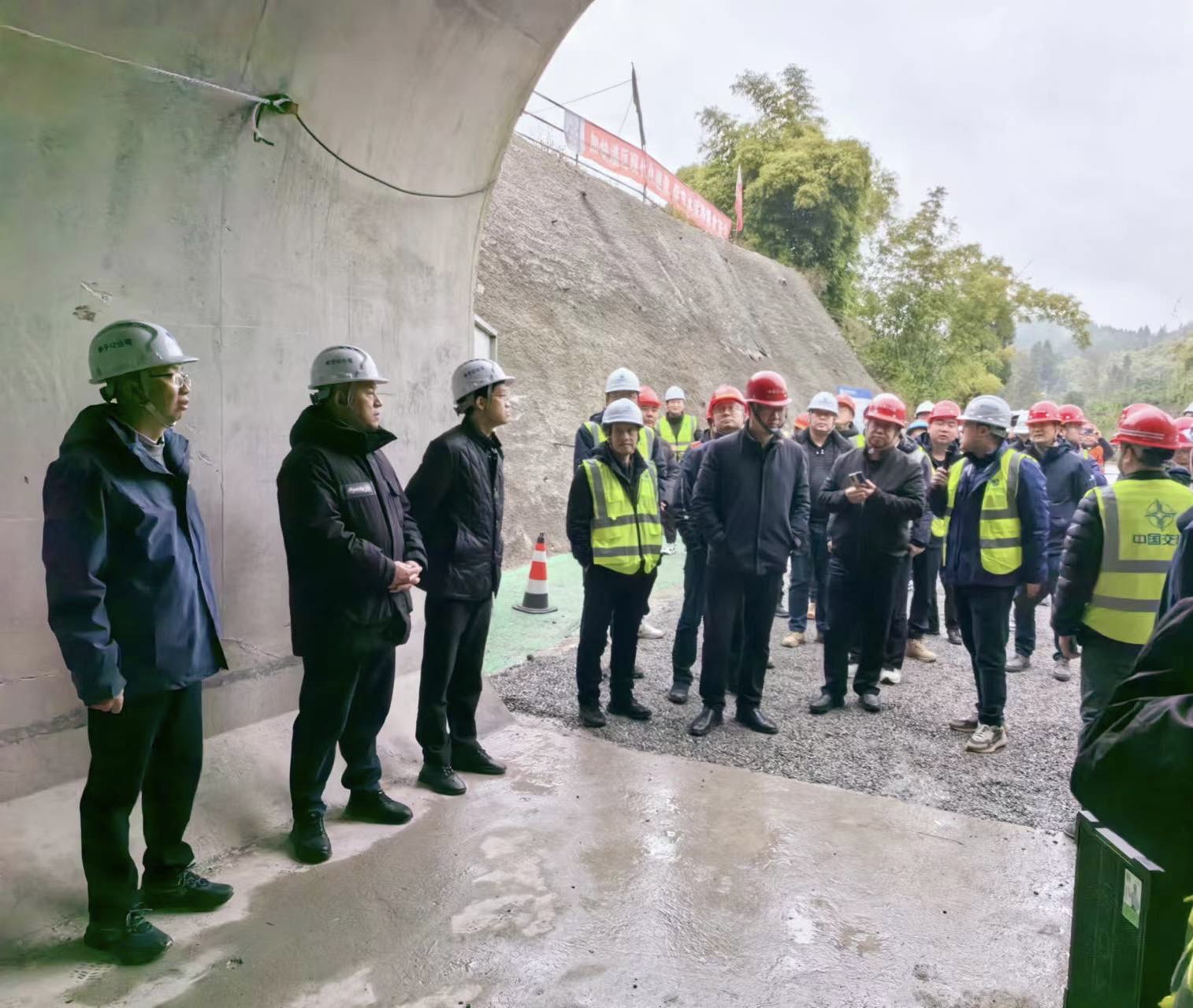 2月22日,亭子口公司在EPC第Ⅳ标段大岭上隧洞施工现场组织召开质量管控现场会议,会议由公司党委副书记、副董事长、总经理文祥明主持。与会人员观摩了EPC第Ⅳ标段大岭上隧洞二衬施工质量问题排查整改现场,公司质量安全部负责人讲解了质量监管具体要求,党委委员、副总经理但凯安排了当前质量管控工作,文祥明作了总结讲话。