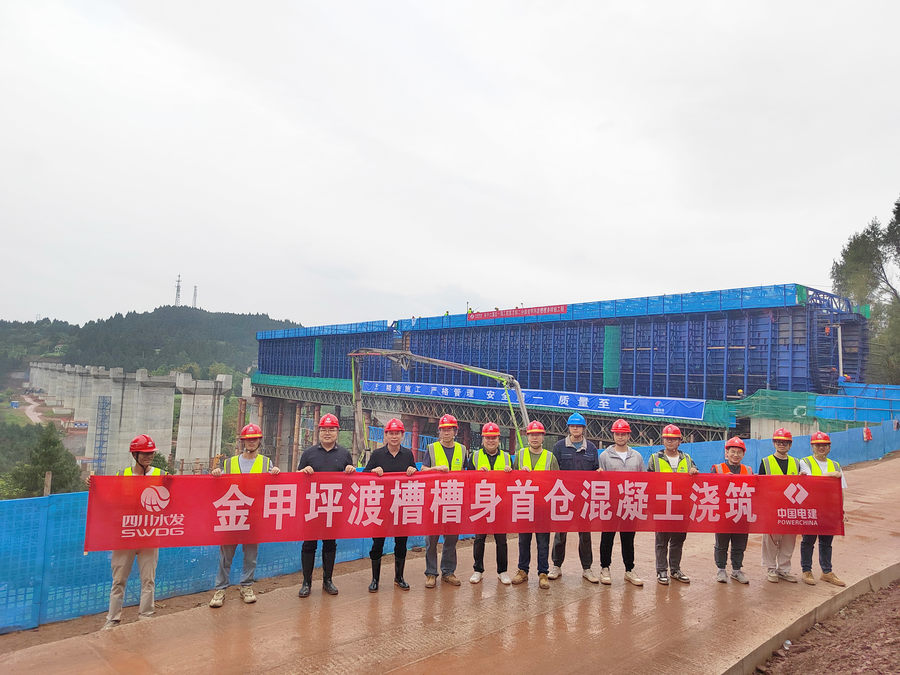 4月17日,亭子口灌区一期工程金甲坪渡槽首跨槽身完成浇筑。金甲坪渡槽是该标段第4座高大渡槽,位于总干渠第8流量段,其设计流量为51.25立方米/每秒,槽身设计为预应力梁式槽跨结构,槽身宽6.4米,深5.57米,跨径布置为15跨42米,全长630米,是安全质量管控的重点部位,在大跨度现浇支架施工过程中,承台及支架基底开挖易破坏周边地质稳定状态,其第15跨槽身横穿244国道,槽下净空小、行车流量大、干扰因素多。