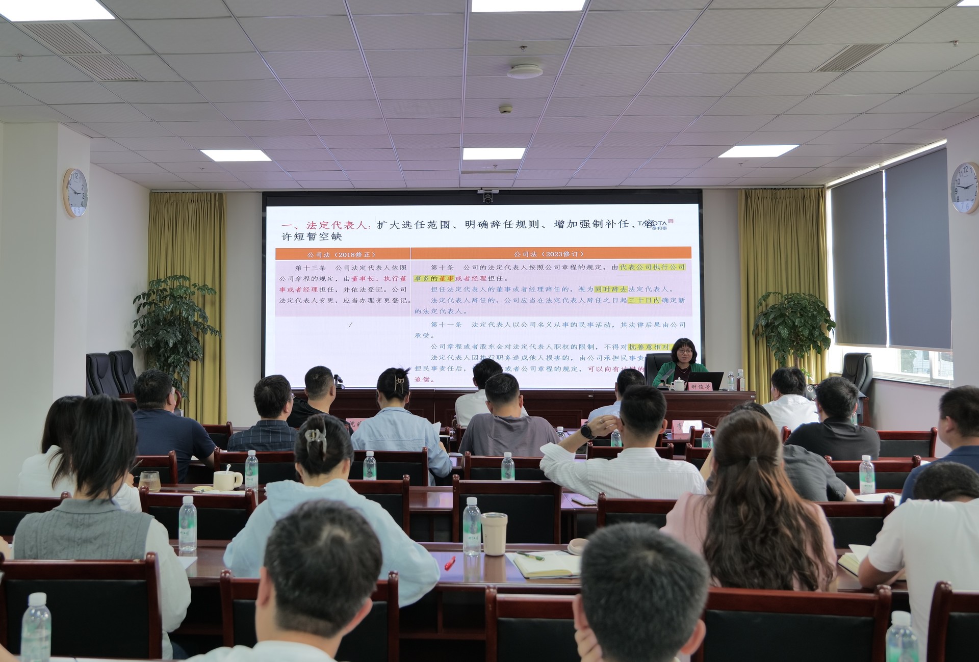 为深入学习贯彻习近平法治思想,进一步提高依法治企水平。5月6日,主播视频 公司组织开展了新修订《公司法》学习宣讲培训,邀请泰和泰律师事务所高级合伙人钟俊芳主任对全体员工开展了《新公司法重点修订条款解读——国企视角》专题培训。