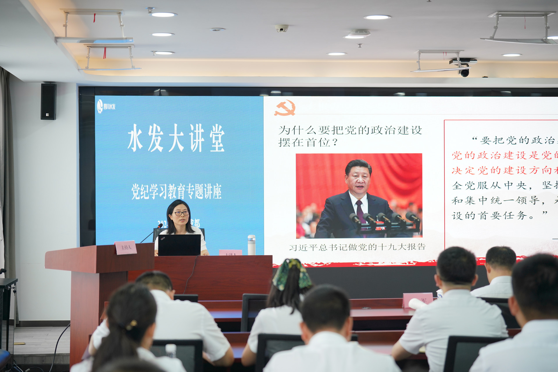 为深入学习贯彻新修订的《中国共产党纪律处分条例》,进一步强化党纪法规意识,着力推进全面从严治党,创新党员干部理论学习的新载体、新路径,5月17日,集团水发大讲堂之“党纪学习教育”第一期在集团总部开讲。集团党委副书记、董事、副总经理、总会计师尹晓东,集团党委委员、纪委书记吴军参加活动,集团总部、下属企业党员代表共计150余人通过线上、线下参加培训。