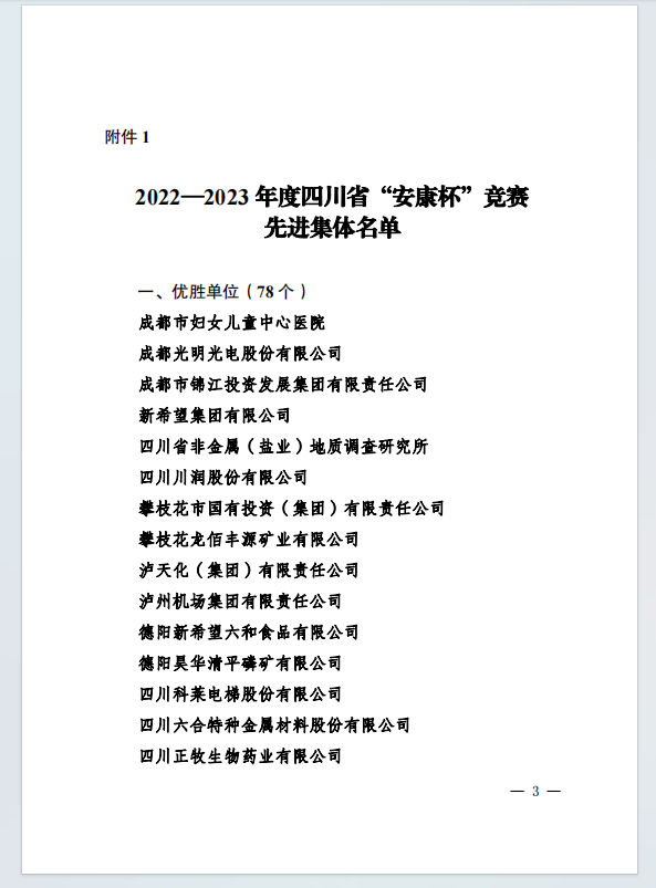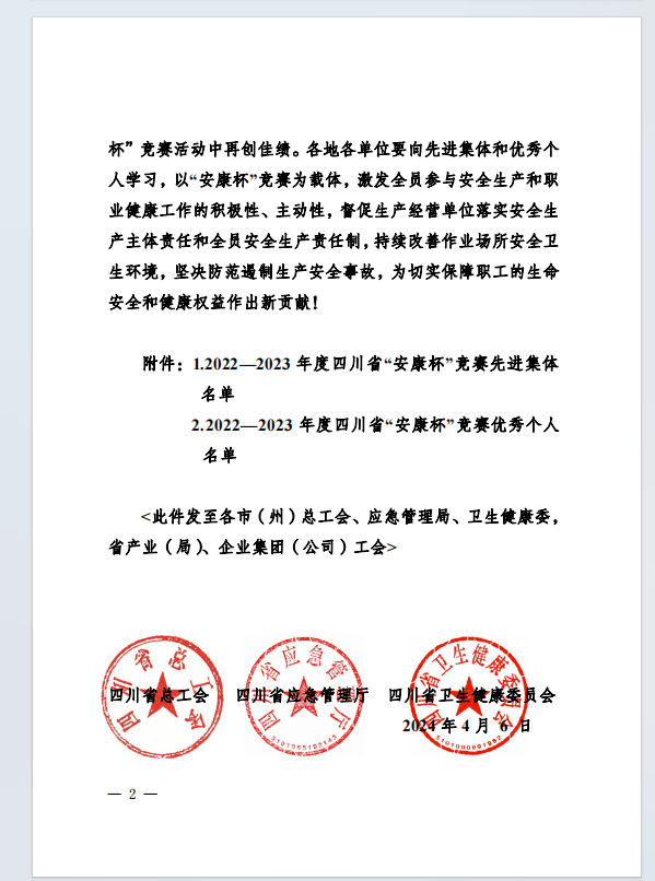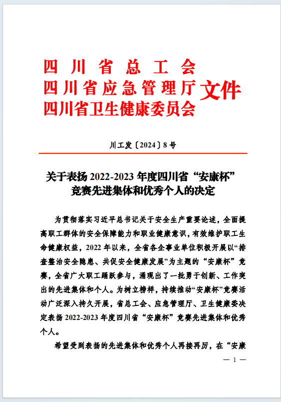 喜报!集团荣获2022-2023年度四川省“安康杯” 竞赛先进集体和优秀个人