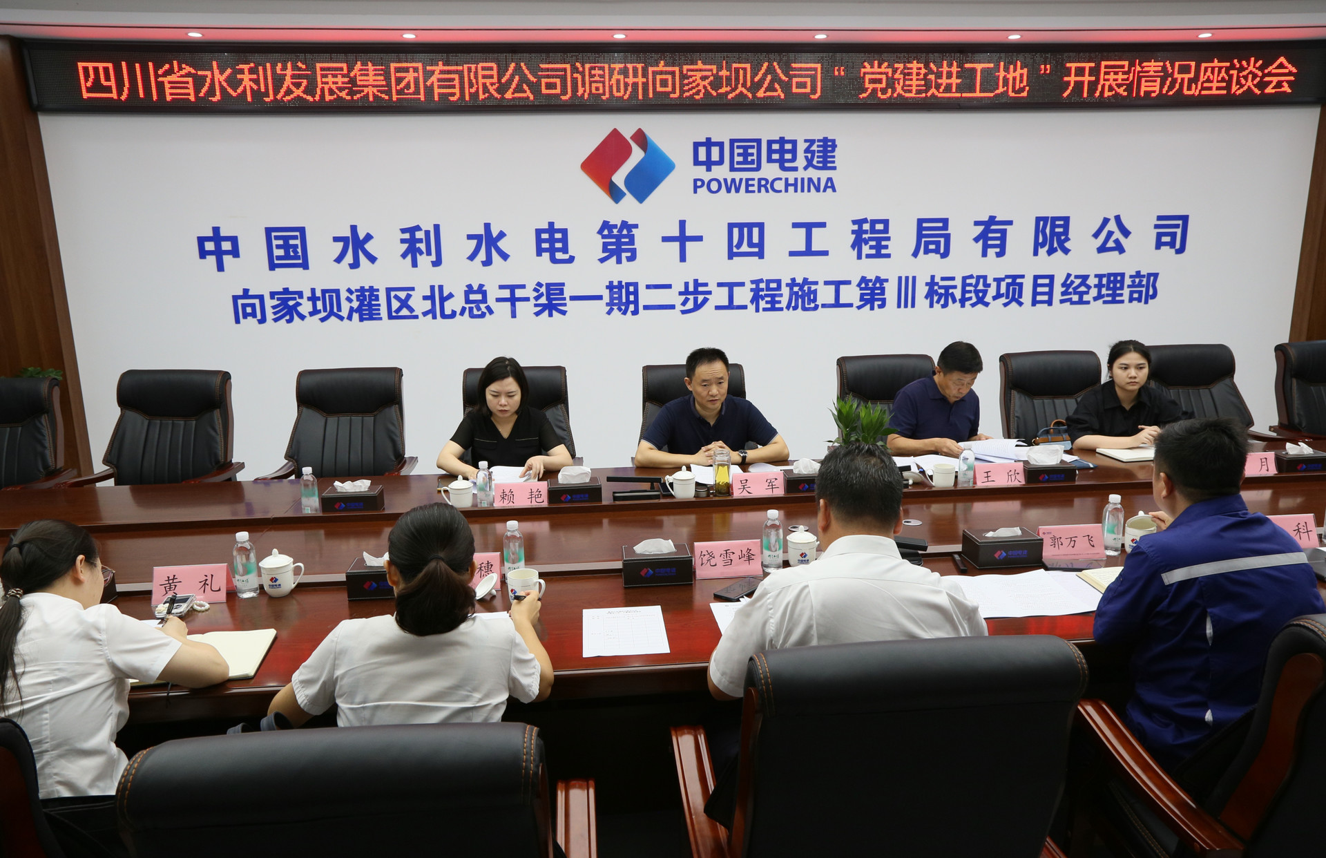 调研组一行先后前往亭子口灌区一期工程第Ⅱ标段项目部,向家坝灌区北总干渠一期二步施工Ⅲ标段项目部,分别与设计单位、施工单位、业主单位座谈,详细了解党建进工地开展情况。