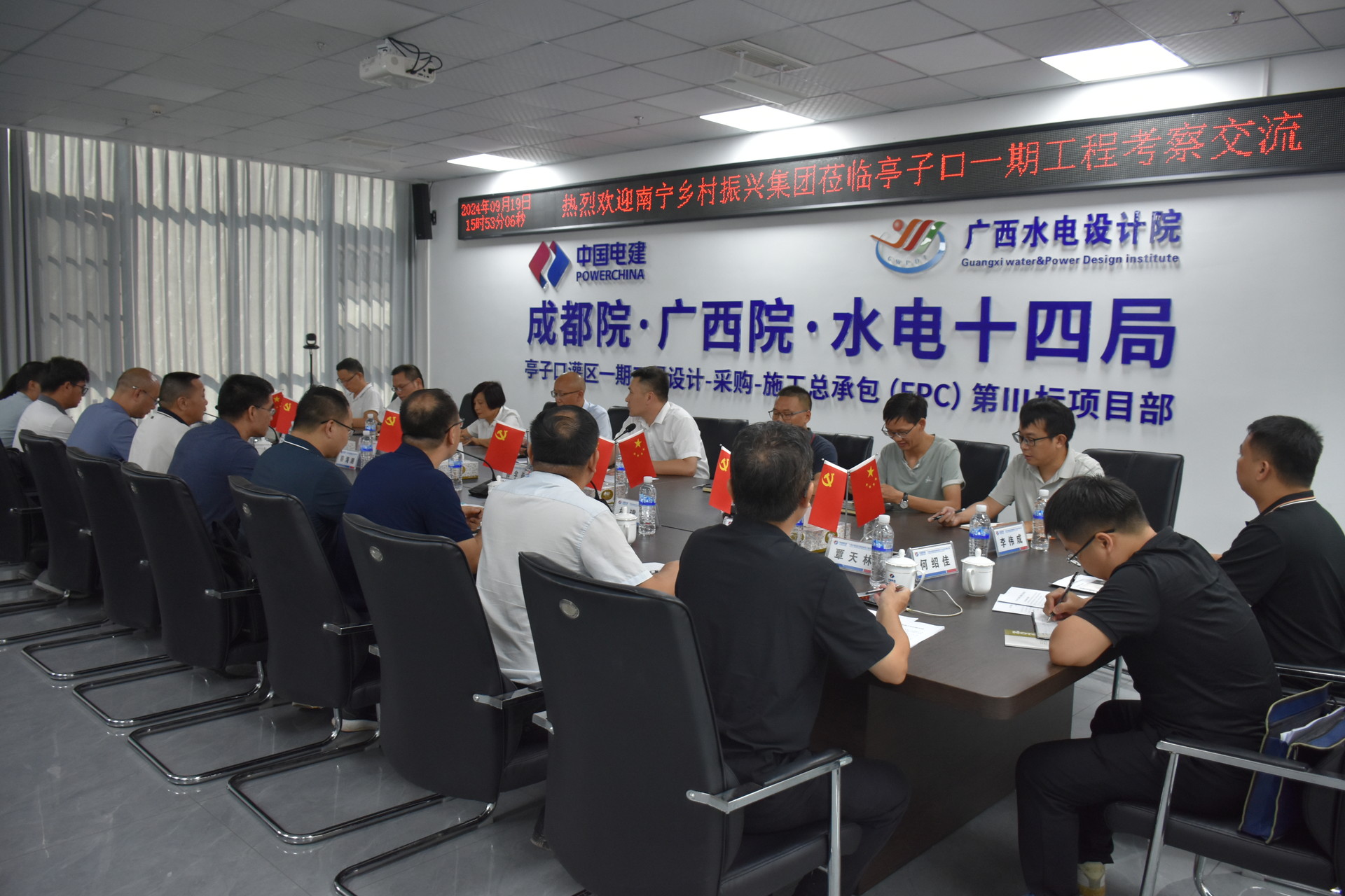 随后,双方就工程建设管理、技术创新、信息化建设及生态保护修复、高大渡槽建设推进等方面进行交流座谈。会上,亭子口公司党委委员、副总经理但凯对南宁市考察组的到来表示欢迎,详细介绍了亭子口灌区工程项目建设概况、背景意义及取得的阶段性成果,并表示希望通过此次交流学习,搭建起广西、四川两省水利部门之间的沟通桥梁,实现优势互补,共同推进水利事业发展。 南宁乡村振兴集团副总经理蔡海潮表示,此次调研交流为南宁市在水利工程建设管理、信息化建设及生态保护修复等方面提供了新的思路和方向。南宁市水利局四级调研员宁念孙表示,将以此次调研交流为契机,进一步加强与亭子口灌区工程参建各方沟通与合作,共同探索水利事业发展的新路径、新模式。