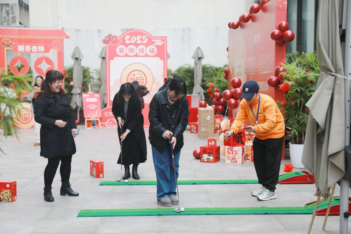 1月17日,集团总部工会和投资公司工会在成都联合举办了“灵蛇启瑞,春映水发”主题迎春游园活动。活动吸引了170余名工会会员参加。游园活动集互动性、知识性、趣味性于一体,设“消消乐”、“铜币击铃”“挑战10s”“眼疾手快”“迷你高尔夫”等多个环节,现场精彩纷呈,气氛热烈。