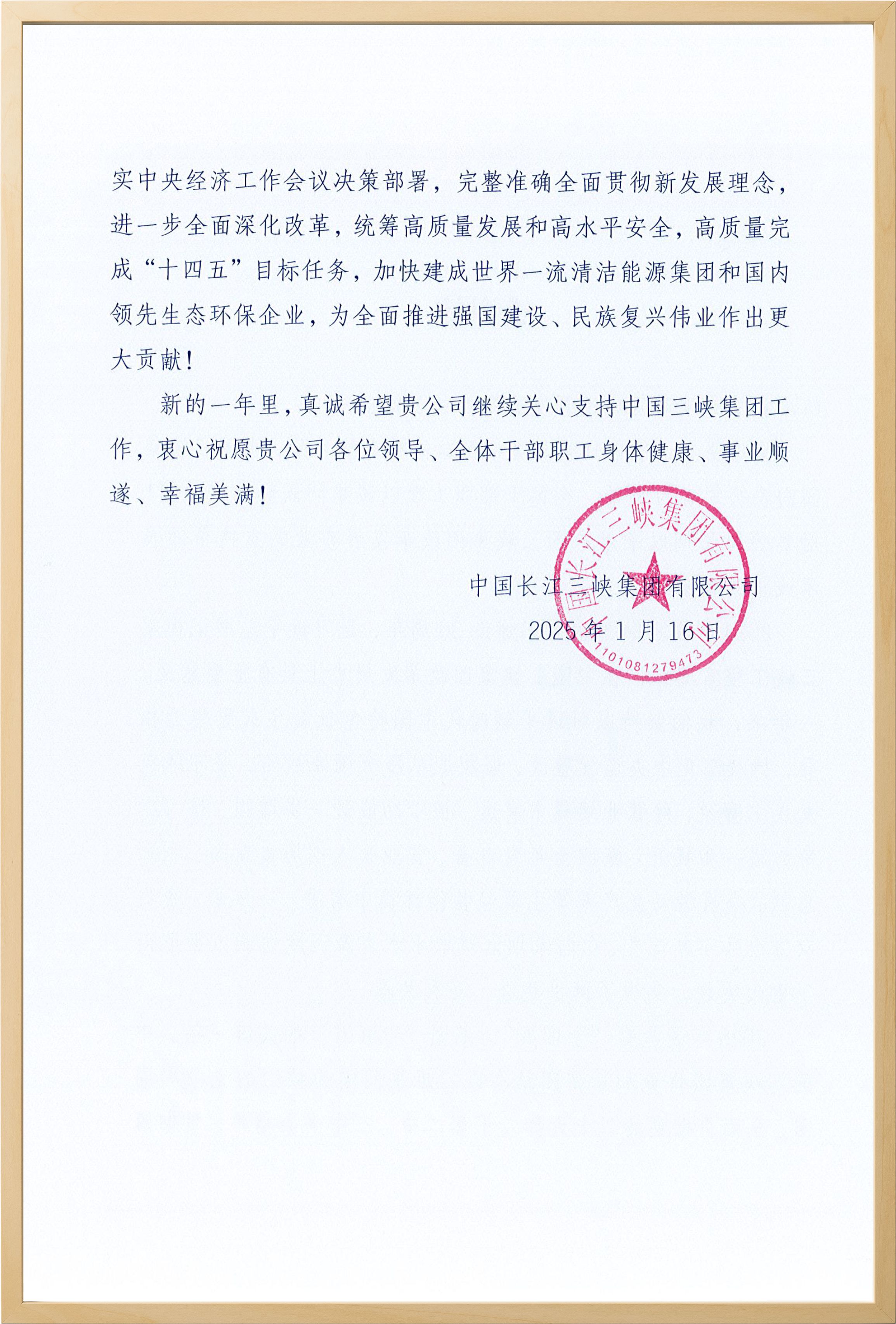 近日,向家坝公司收到了来自中国三峡集团的感谢信。在信中,中国三峡集团对向家坝公司在过去一年中的支持与合作表示了诚挚的感谢,并对双方取得的合作成果给予了高度评价。